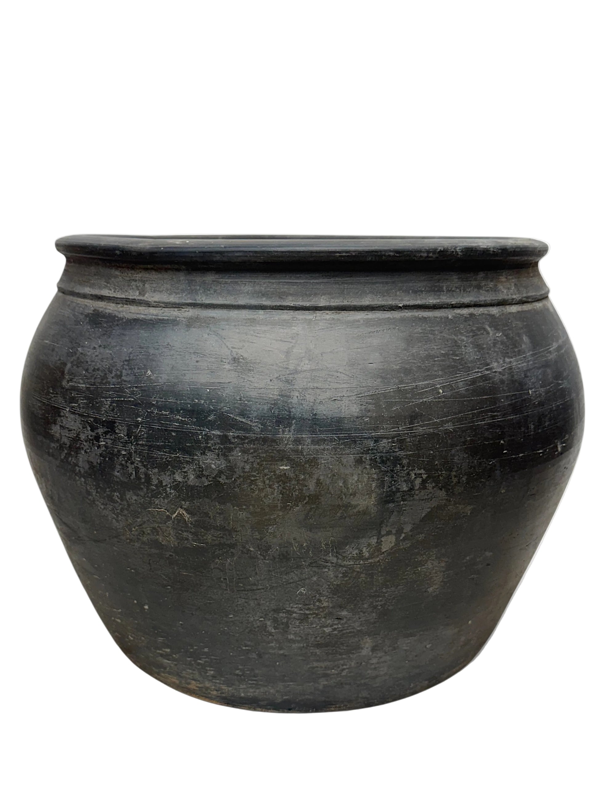 This vintage Chinese floor pot is a striking, timeworn piece perfect for elevating both indoor and outdoor spaces. Measuring 13 inches tall with an 13-inch wide opening, it offers generous scale for styling interior corners, entryways, patios, or garden areas. Its substantial form is ideal for displaying small trees, dried branches, or decorative arrangements.