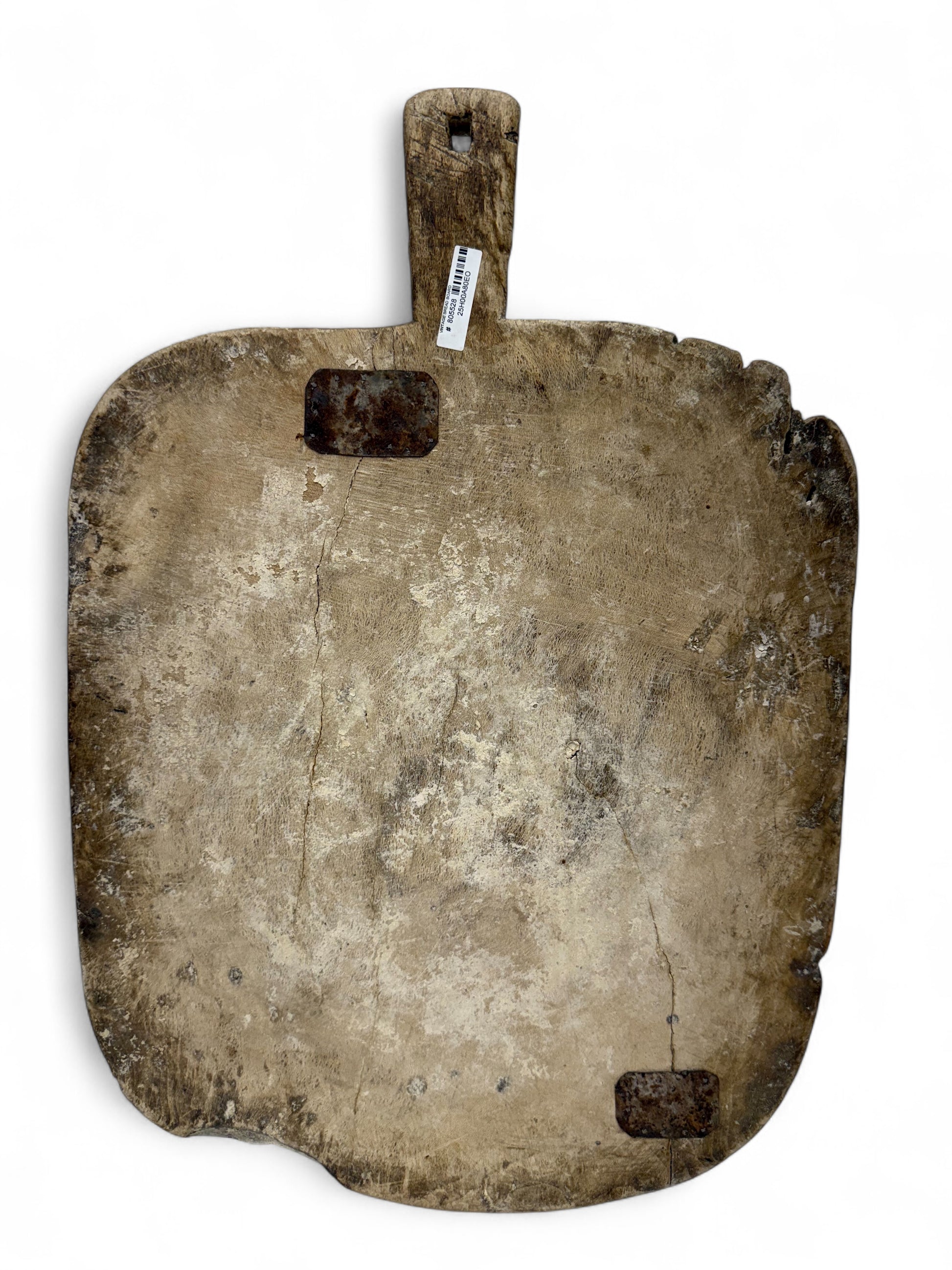 Impressively sized and full of character, this antique bread board features a beautiful aged patina and natural wood grain. Perfect for serving, styling, or as a striking rustic display piece in your kitchen or dining area.