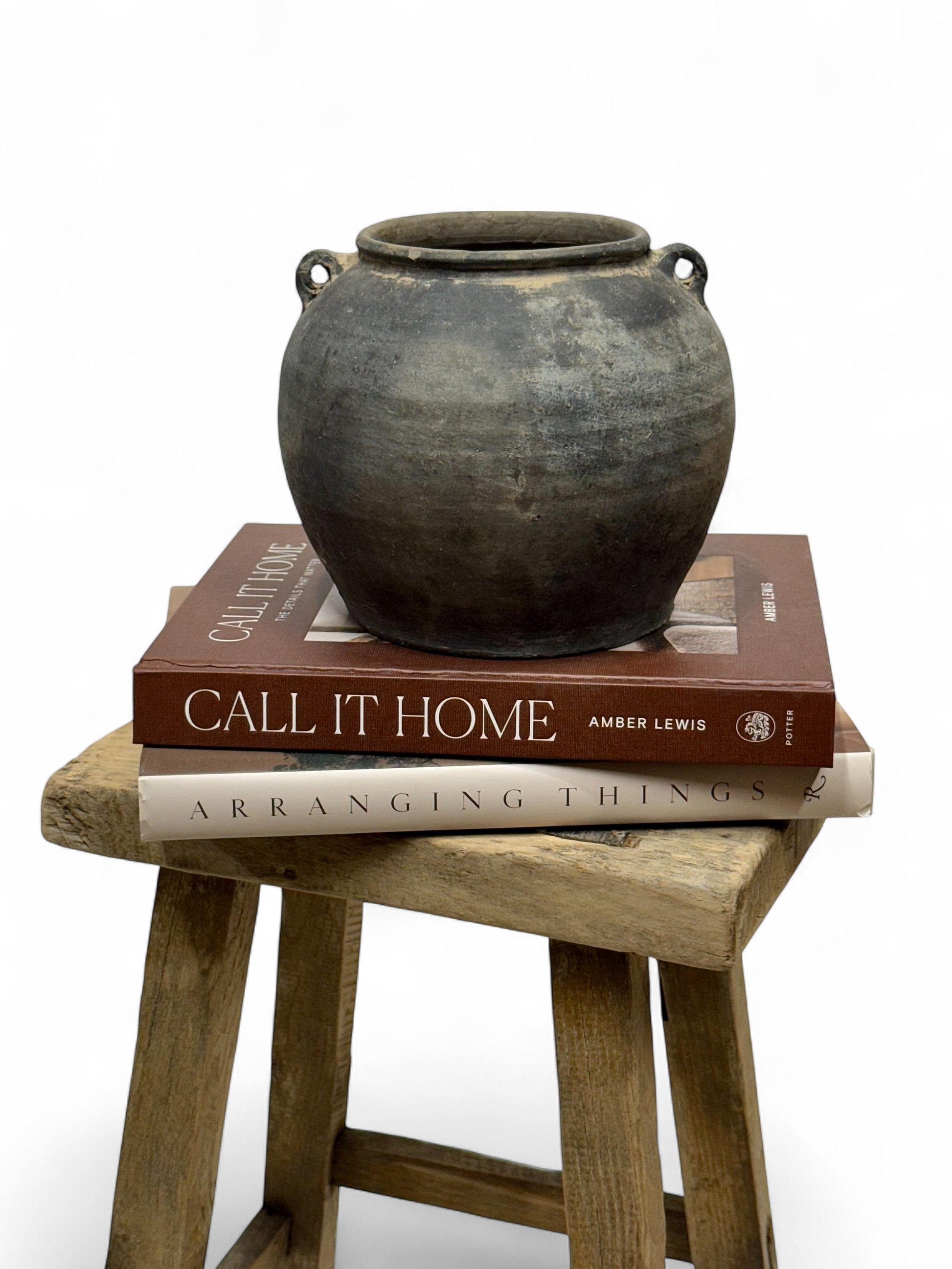 Mini lidded Chinese vase — perfect for filling small spaces or adding a touch of charm to shelves, mantels, and tabletops. 5 inches tall with a 4 inch-wide lid.