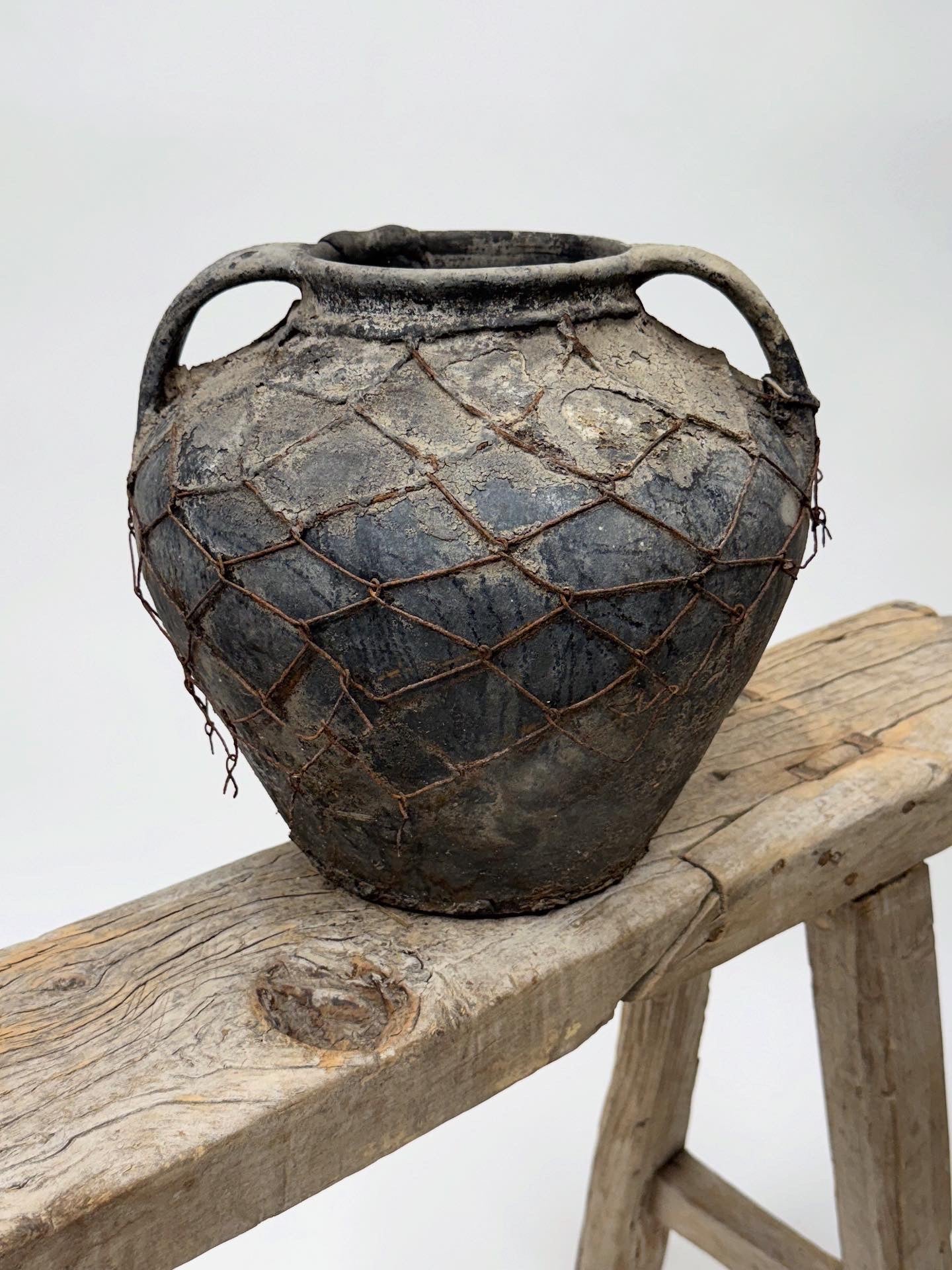 Antique Moldova vase with handles and wire - amazing patina!