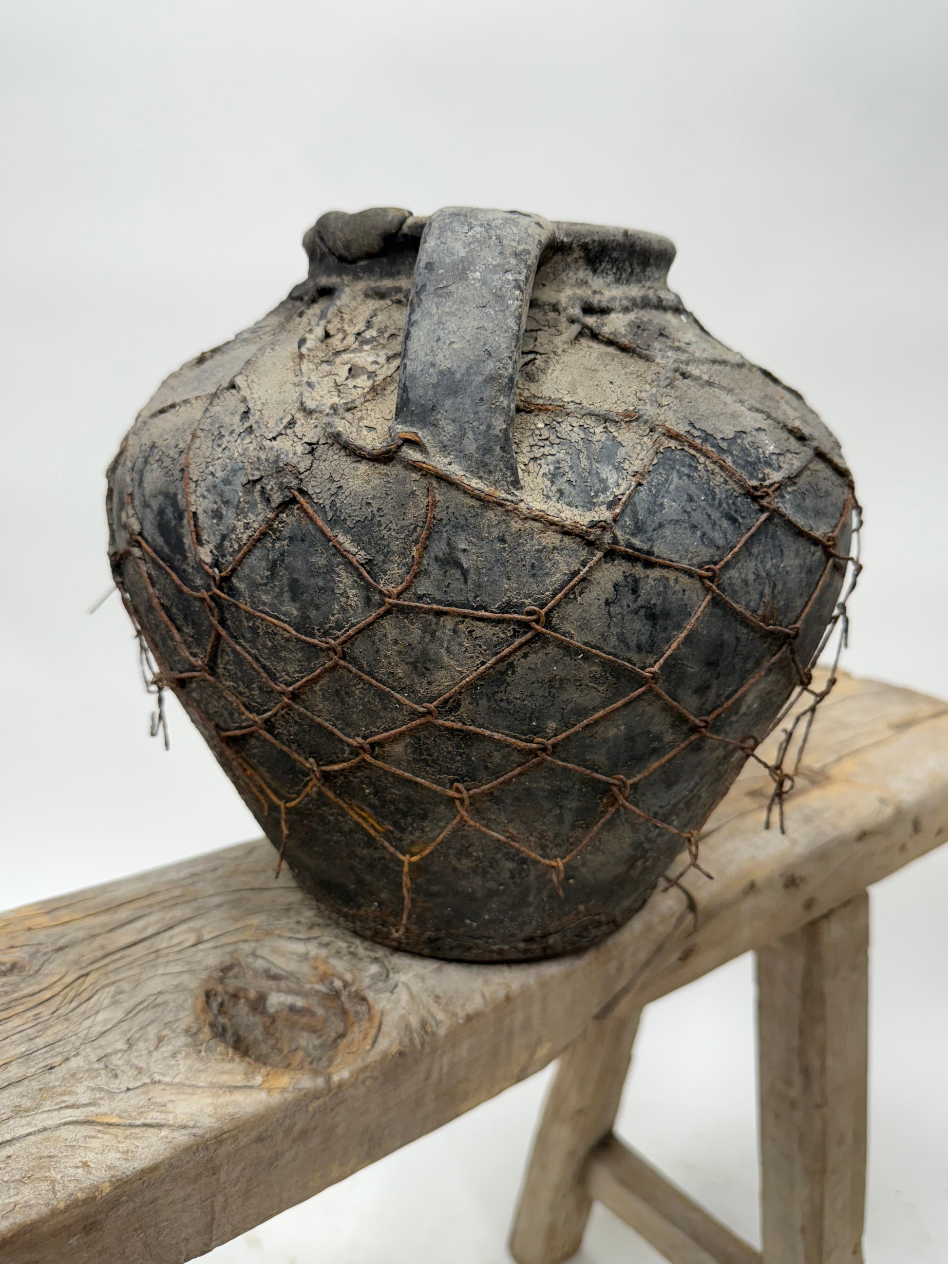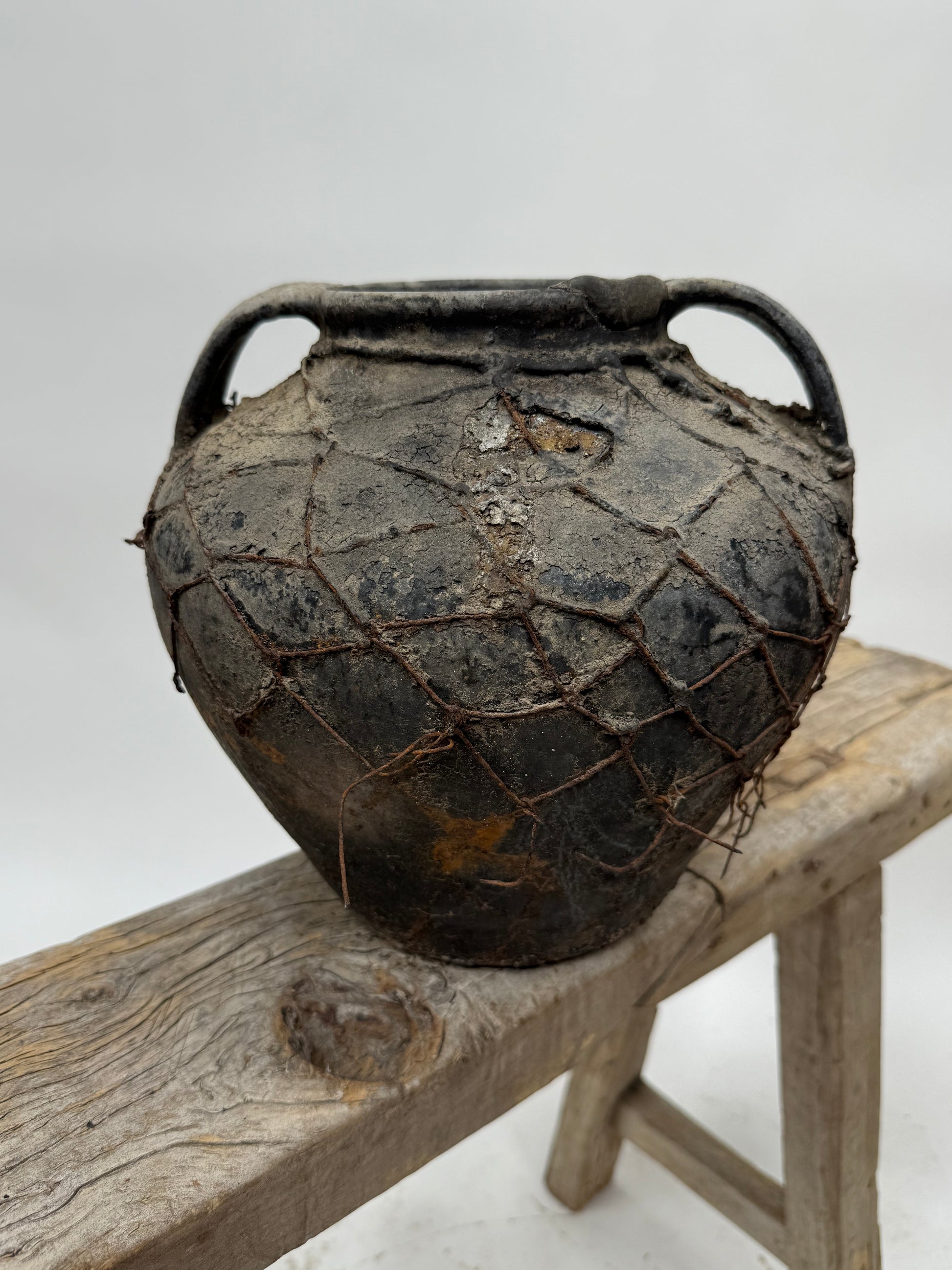 Antique Moldova vase with handles and wire - amazing patina!