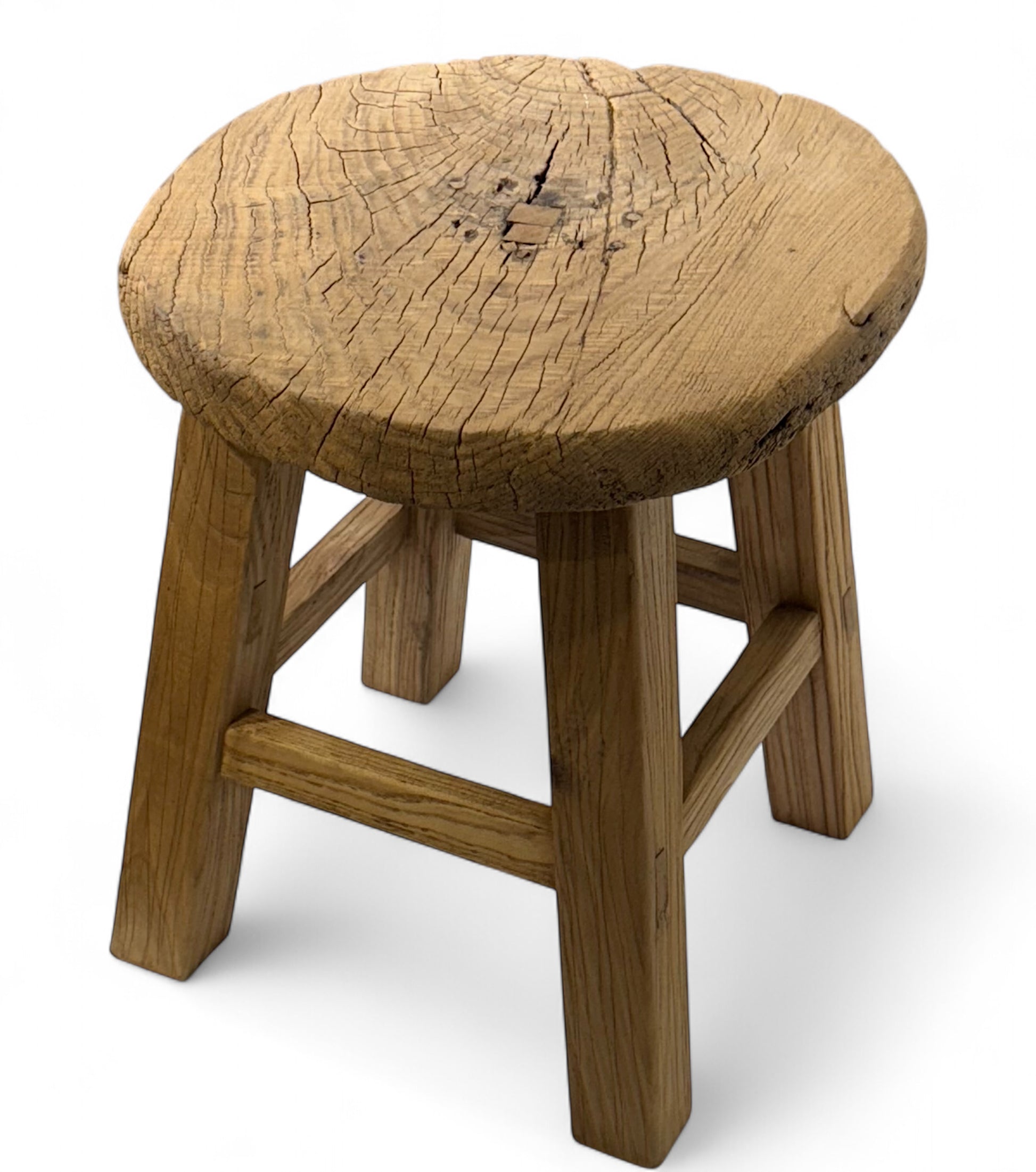 Crafted from aged Chinese elm, this piece features a tabletop with a naturally uneven surface, enhancing its authentic patina and timeless character. Perfect as an end table or side table, it adds rustic charm to any space.