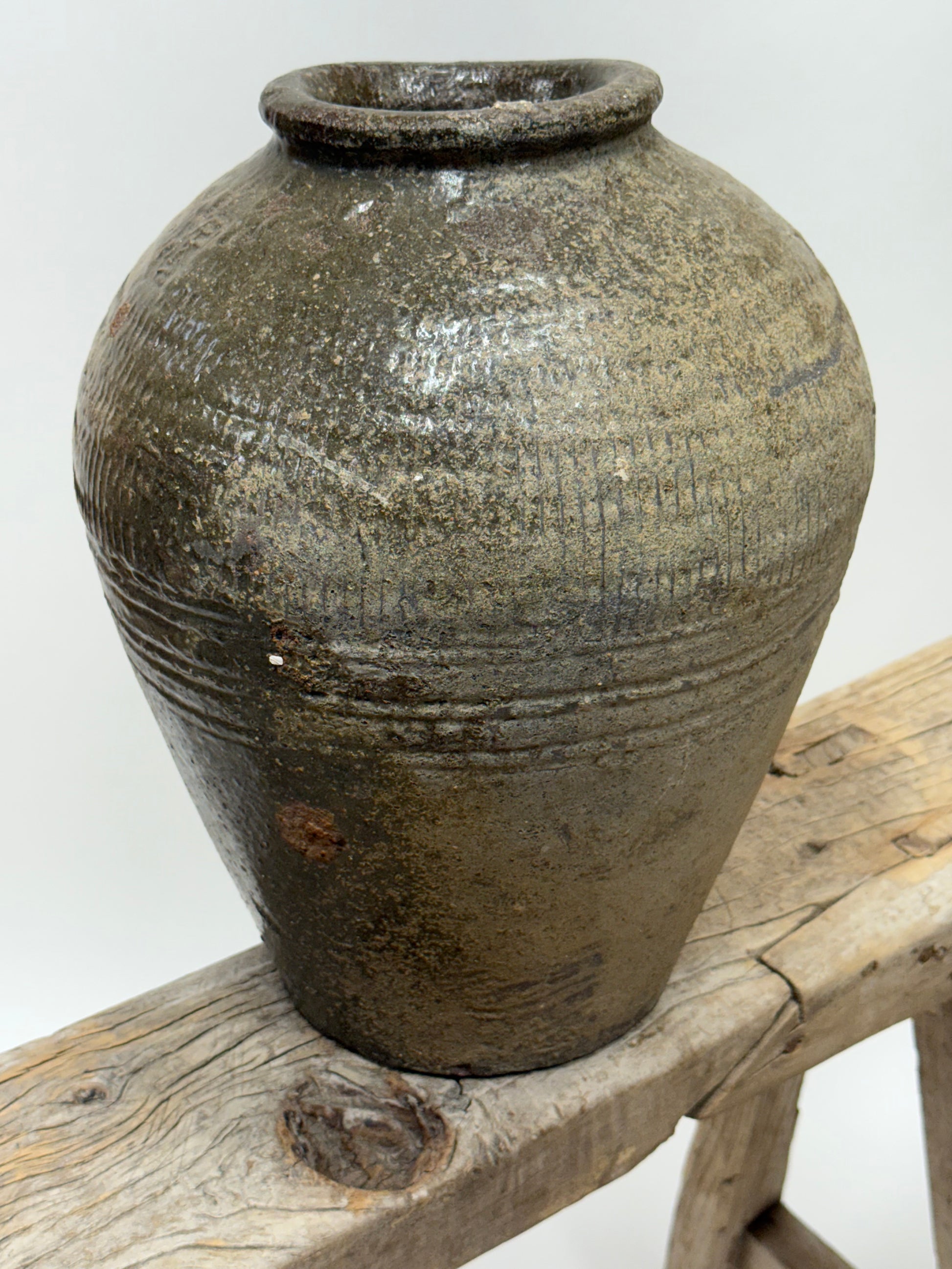 A rustic, antique-style jar with timeless charm. Beautiful on its own or styled in pairs.
