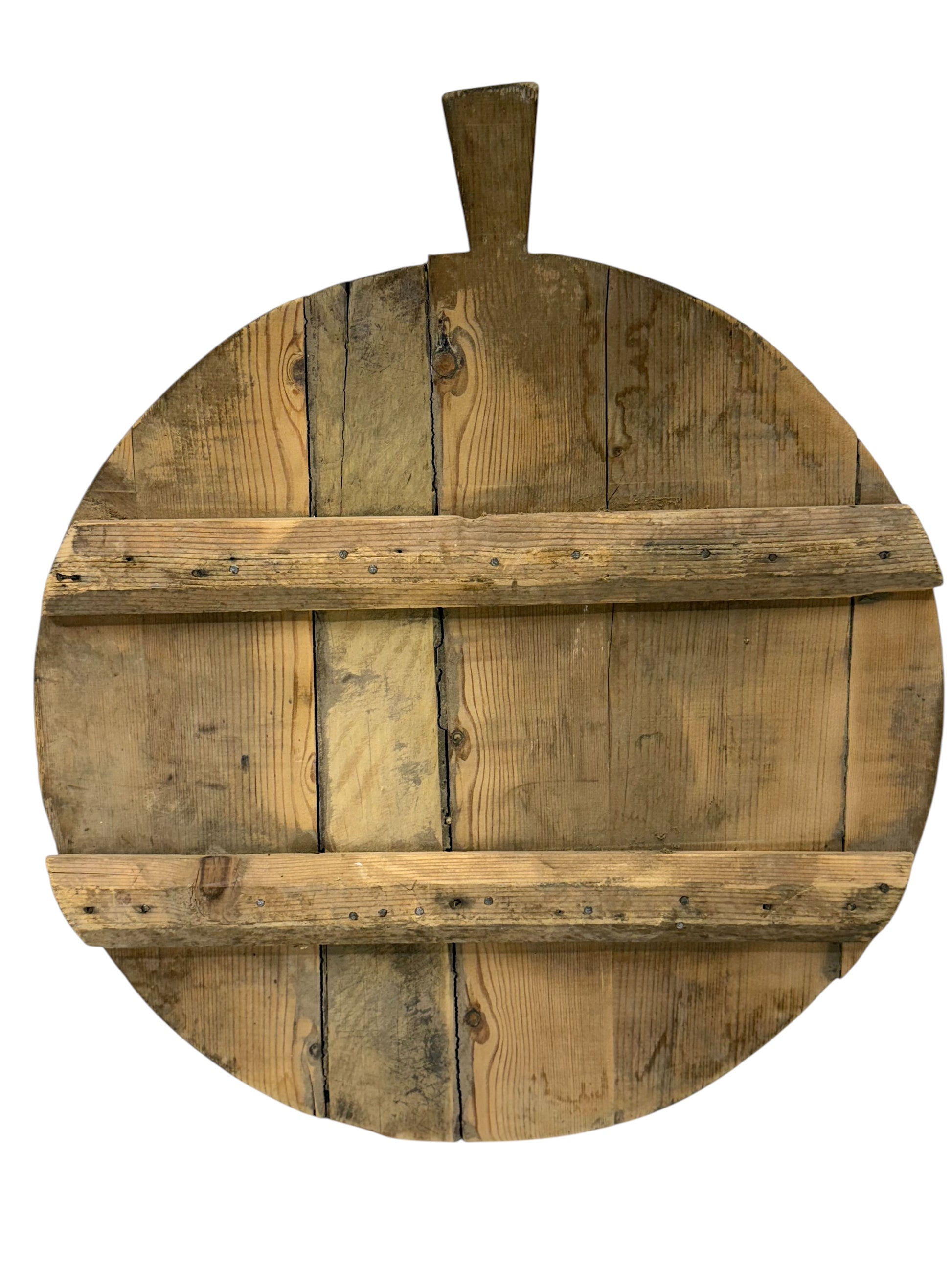 Impressively sized and full of character, this antique bread board features a beautiful aged patina and natural wood grain. Perfect for serving, styling, or as a striking rustic display piece in your kitchen or dining area.