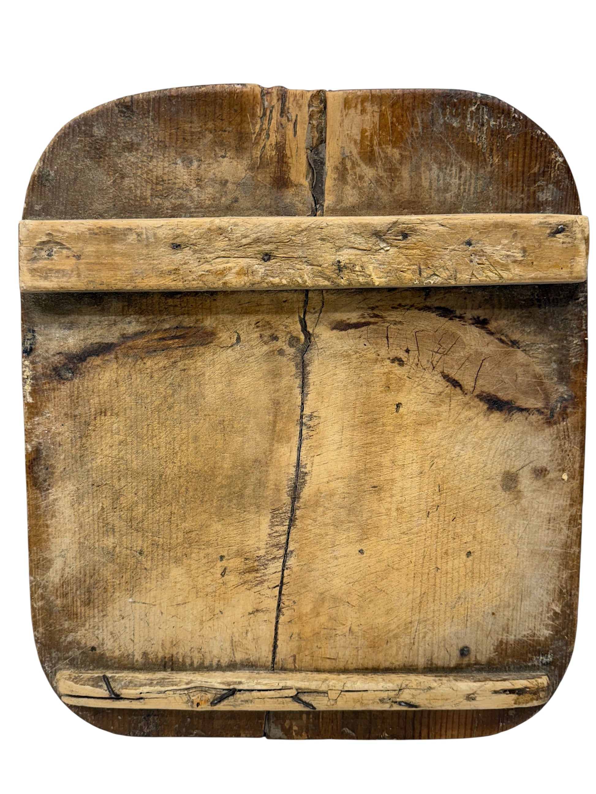 Impressively sized and full of character, this antique bread board features a beautiful aged patina and natural wood grain. Perfect for serving, styling, or as a striking rustic display piece in your kitchen or dining area.