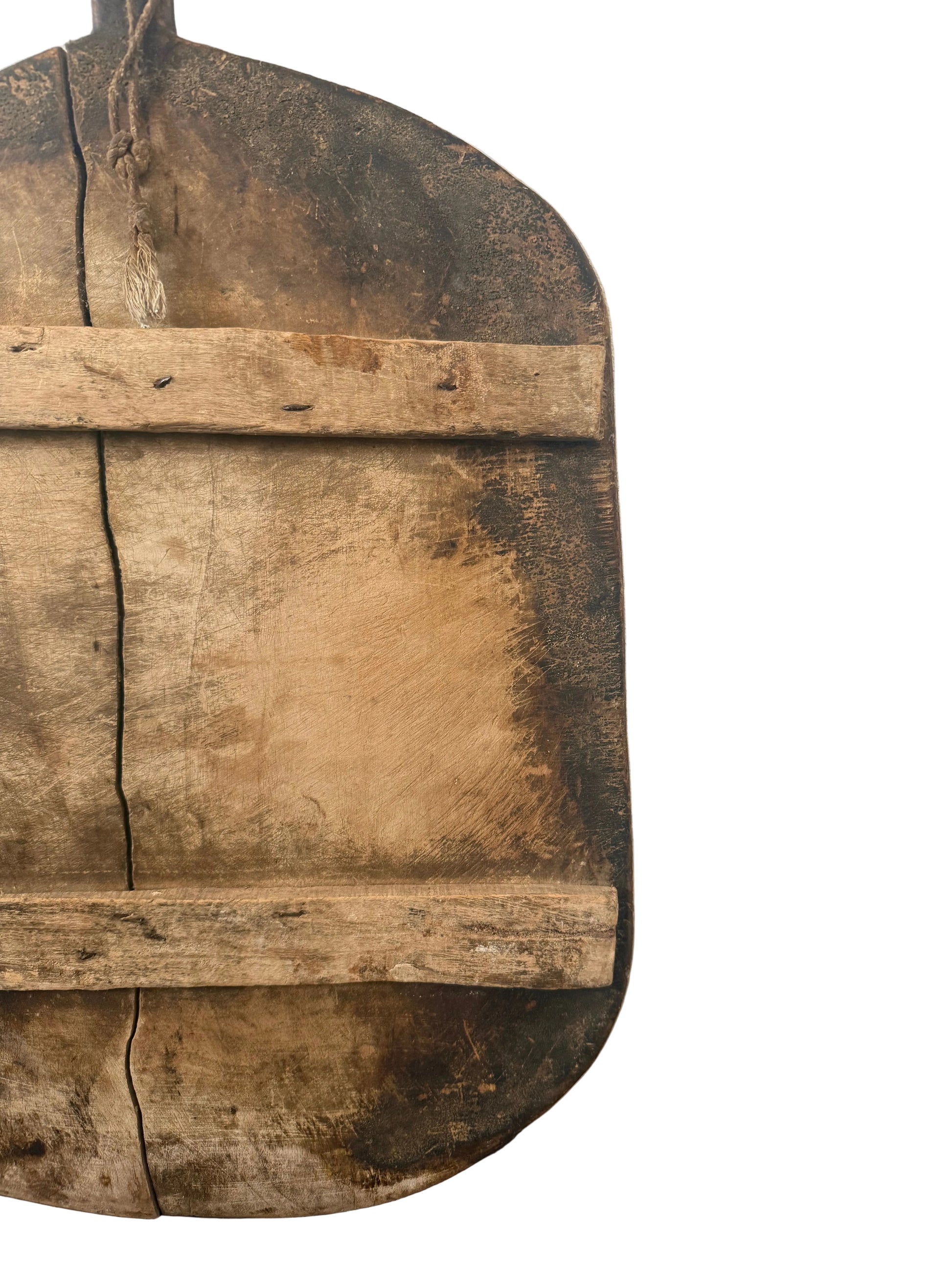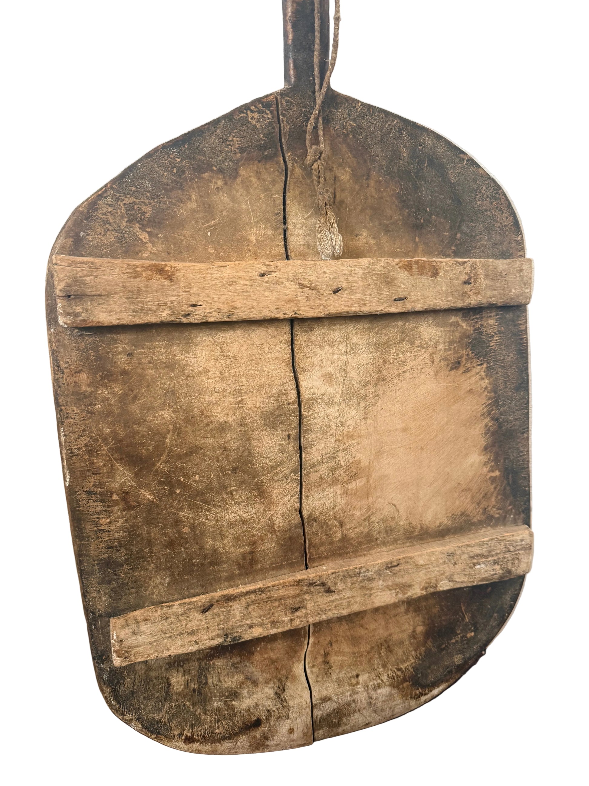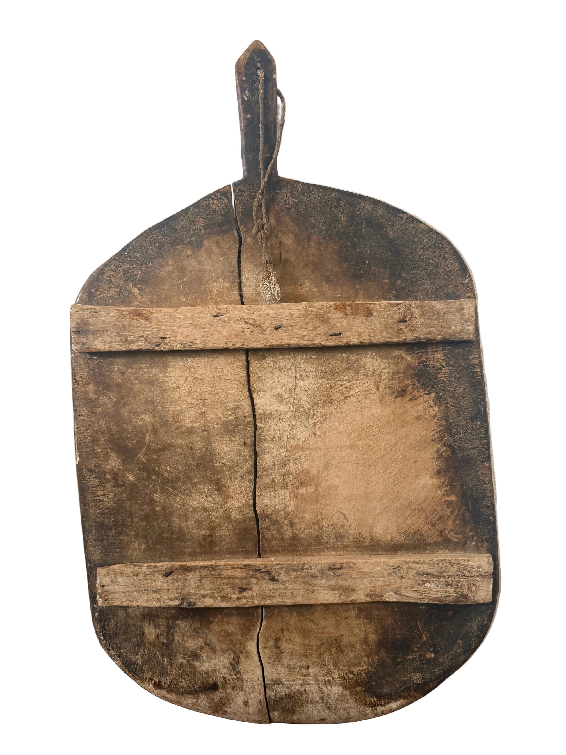 Handcrafted in Turkey, this generously proportioned breadboard brings warmth, texture, and quiet character to the kitchen. Its organic silhouette and naturally aged surface showcase subtle variations in tone and wood grain, making each piece entirely unique.