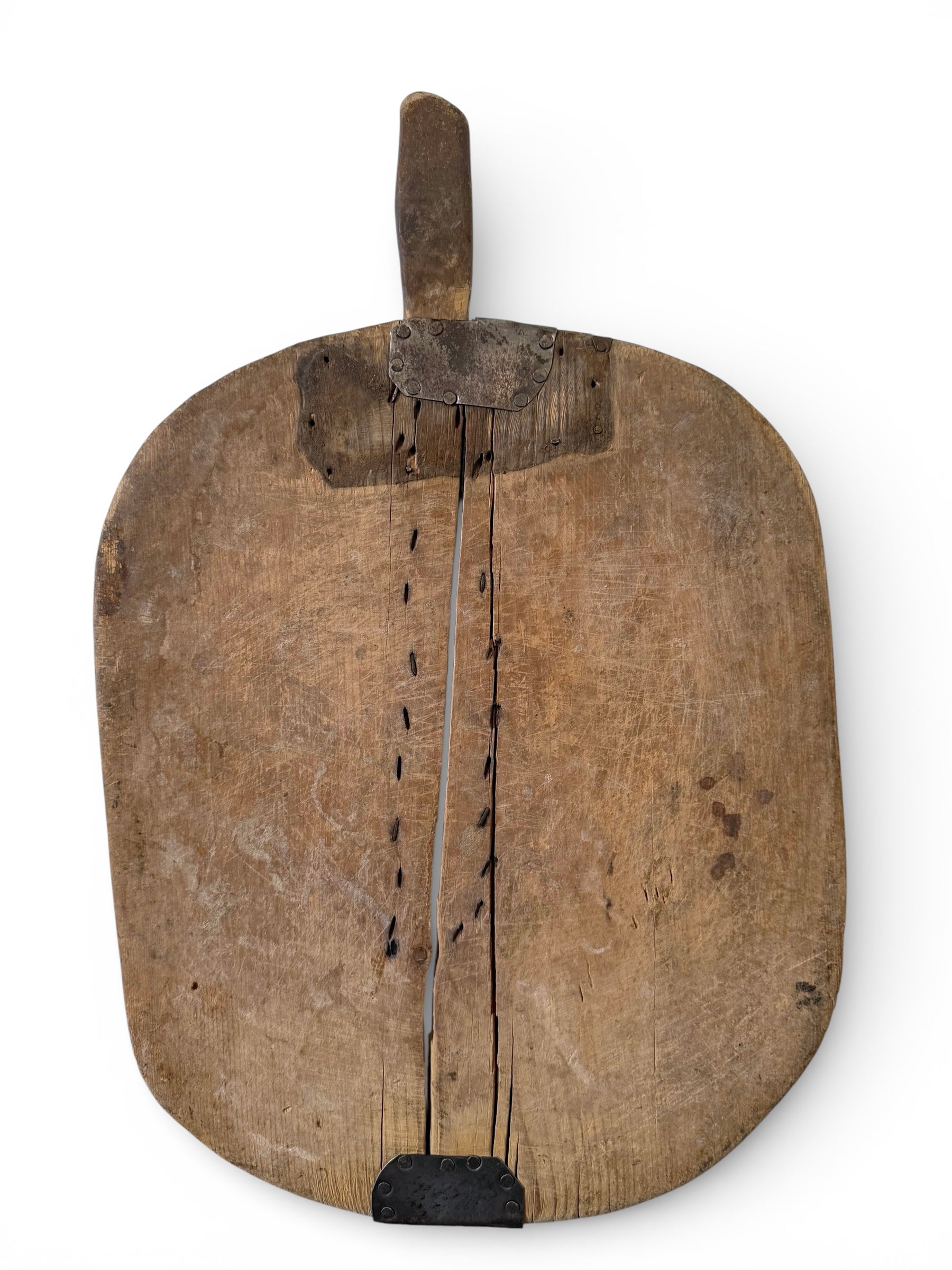 Handcrafted in Turkey, this beautifully scaled breadboard brings warmth, texture, and understated character to the kitchen. Its organic silhouette and timeworn surface reveal subtle variations in tone and wood grain, making each piece truly one of a kind.